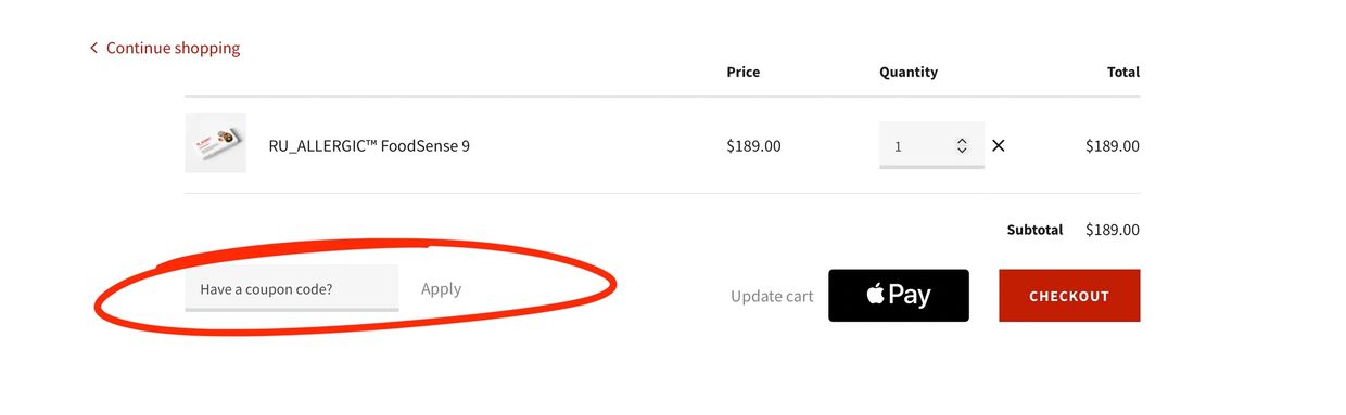 4. Enter your gift card code where it says “Have a coupon code?”